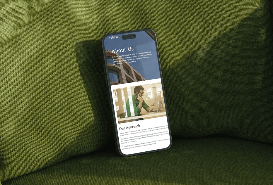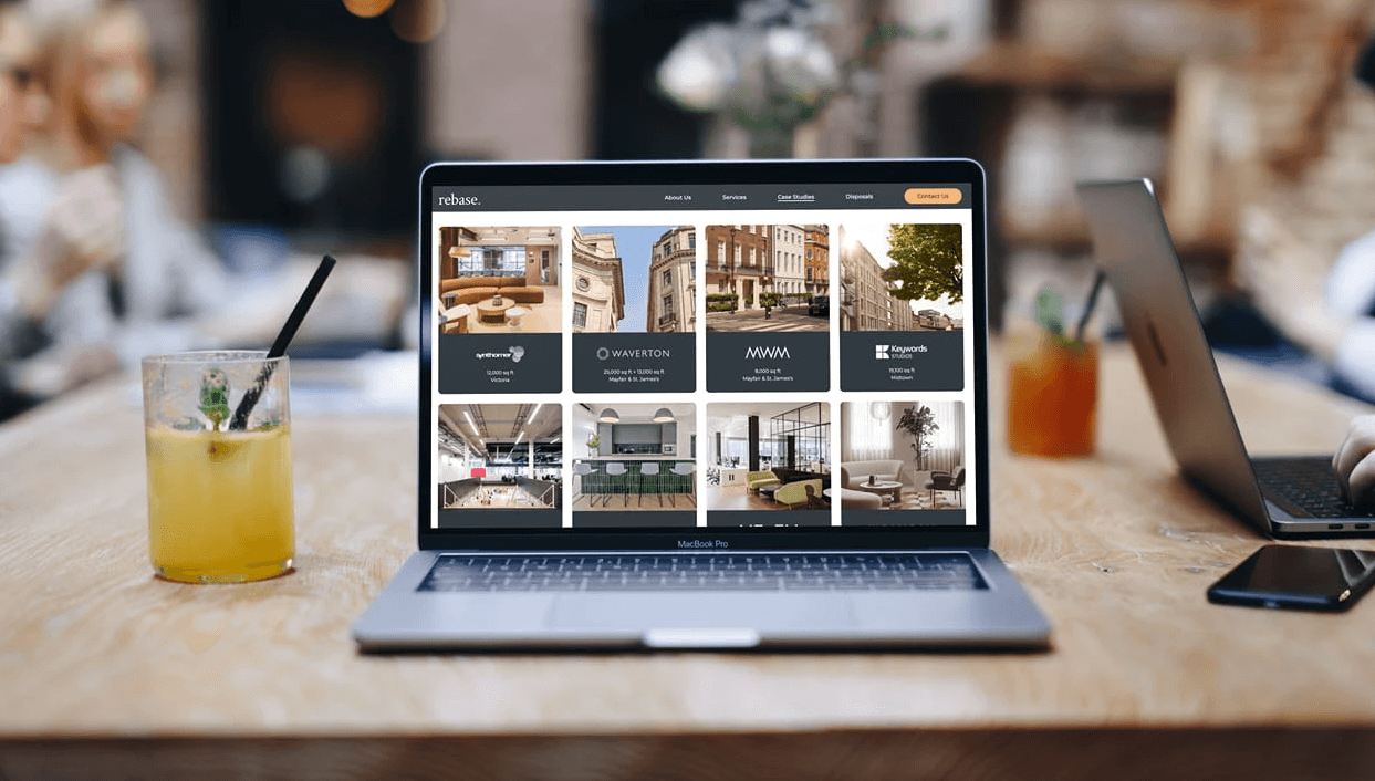 The focus of the design phase was to evolve Rebase’s existing brand into a stronger, more confident digital experience. We refined and elevated the visual identity, introducing a cleaner, more contemporary layout system and a refreshed design language that felt like a natural progression of the brand rather than a complete overhaul. User journeys were carefully considered to ensure visitors could quickly understand Rebase’s offering, explore services, and discover proof of capability through their work. Clear calls-to-action were introduced throughout the site, balancing conversion with a professional, credible tone. We also designed a flexible structure for showcasing case studies and disposals in a way that felt engaging and easy to browse.