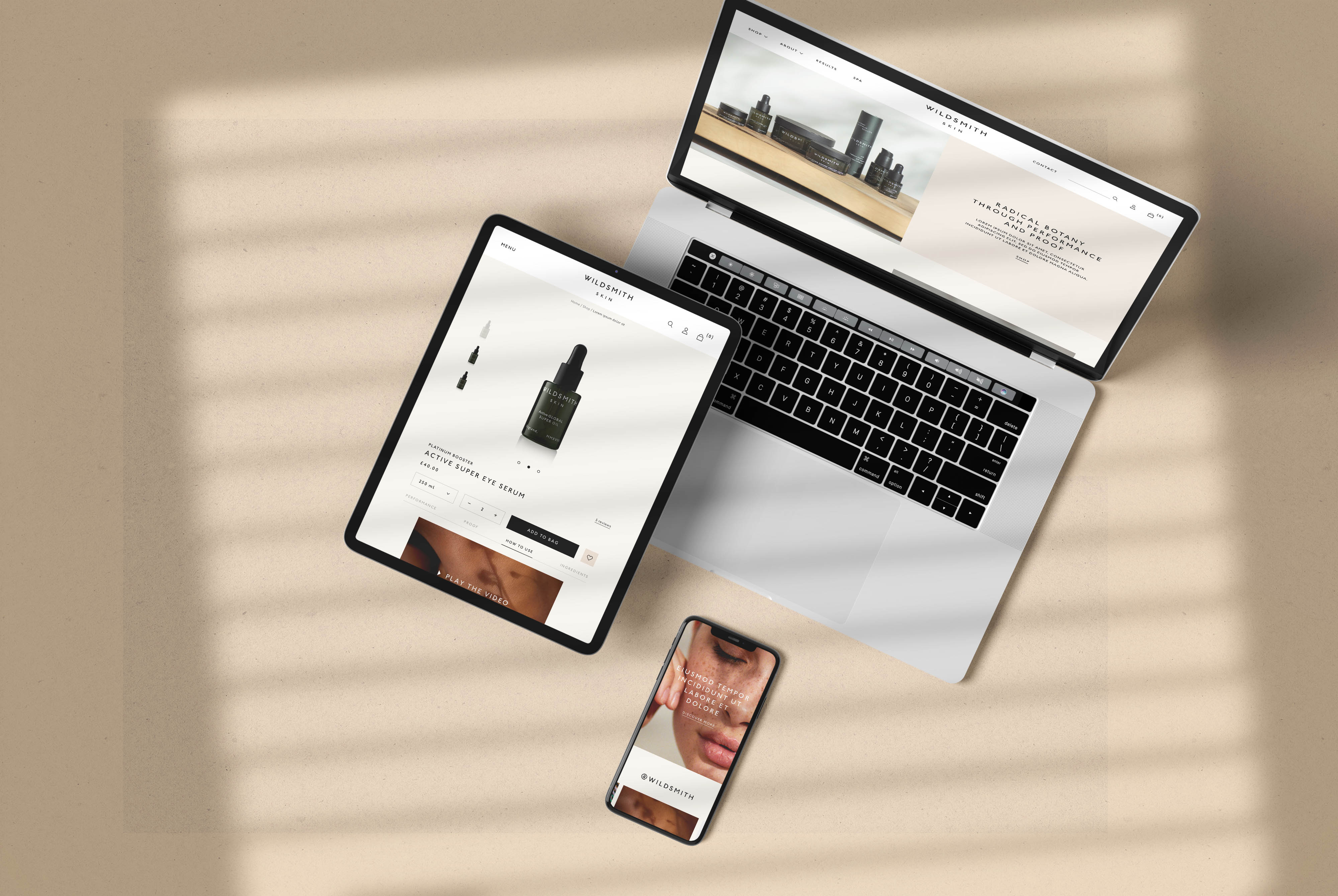 Starting out as a completely new concept, the exceptionally luxurious and naturally produced skincare brand Wildsmith Skin needed somewhere to present and sell their new product range. Wanting to stay away from the usually standard and formulaic approach of ecommerce, we were tasked with building a site that pushed the boundaries of an online store using a more artistic and playful edge.